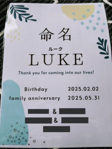 名前は、主人が光をもたらすとゆう由来で『ルークくん』と名づけ、命名を作成してくれました♬