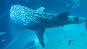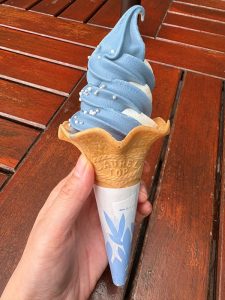 ラムネとバニラ味のジンベエソフトクリーム🍦ラムネはジェラートでなく、しっかりクリーム感が出ててとっても美味しかったです♬↓