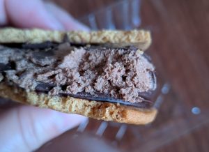 中身のチョコのチョコムースのような食感とクッキーがザクザク感がいい✨