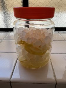 瓶に輪切りにした柚子と氷砂糖を入れたら完成‼️