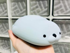手のひらサイズのあざらし形の湯たんぽなんです。