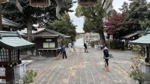 落ち葉は比較的少なかったですが砂利に落ちているのも丁寧に拾いました。